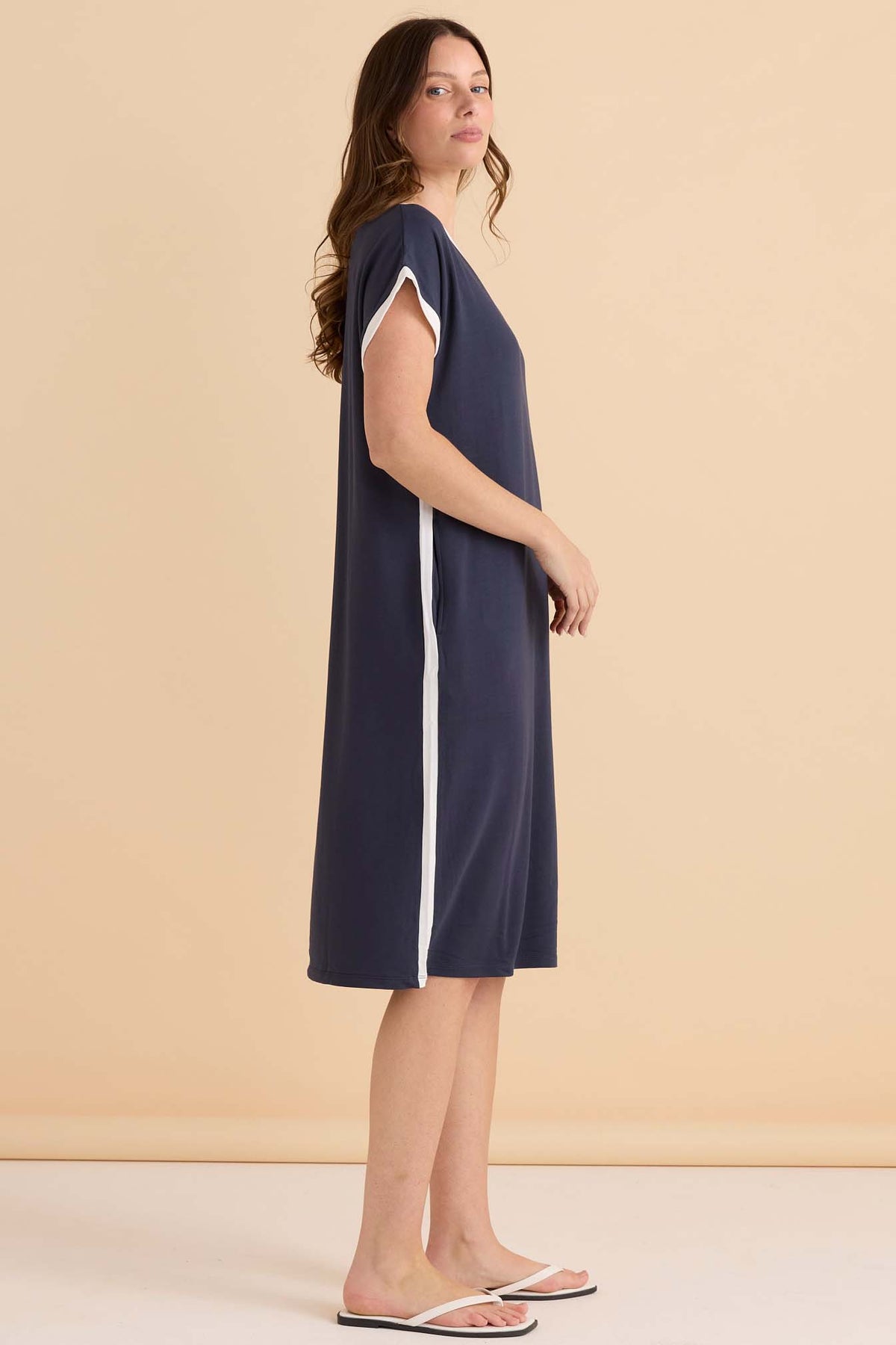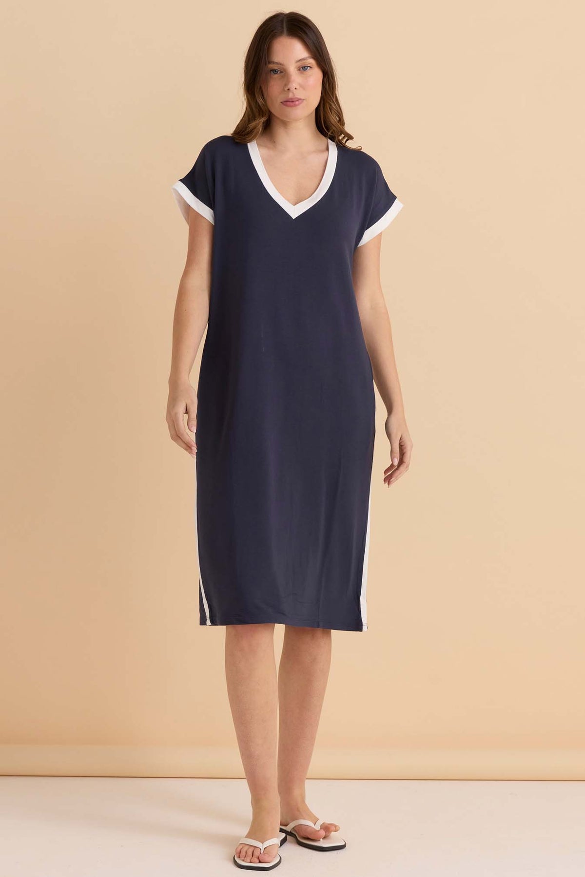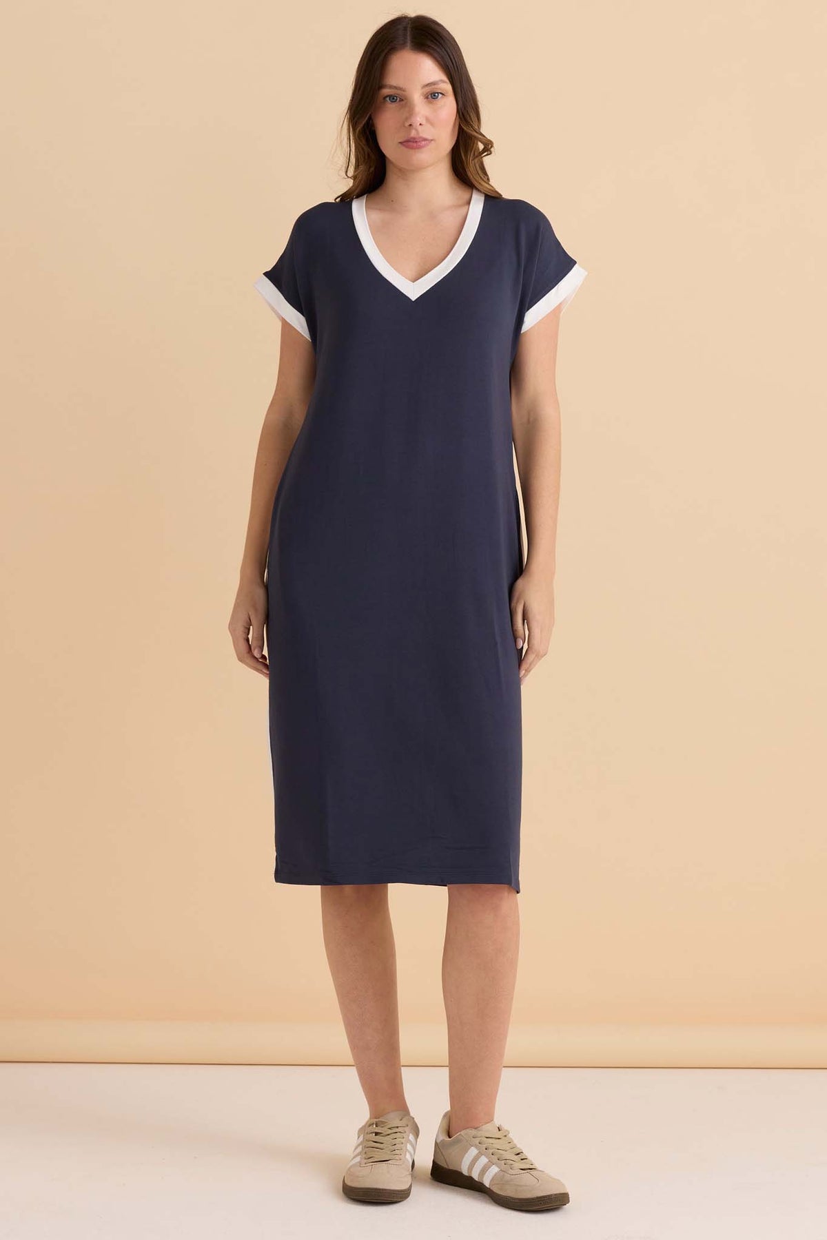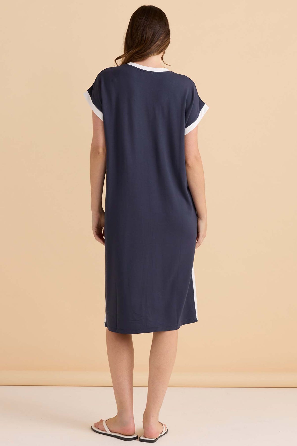 Betty Basics Tula T-Shirt Dress in Petrol and White