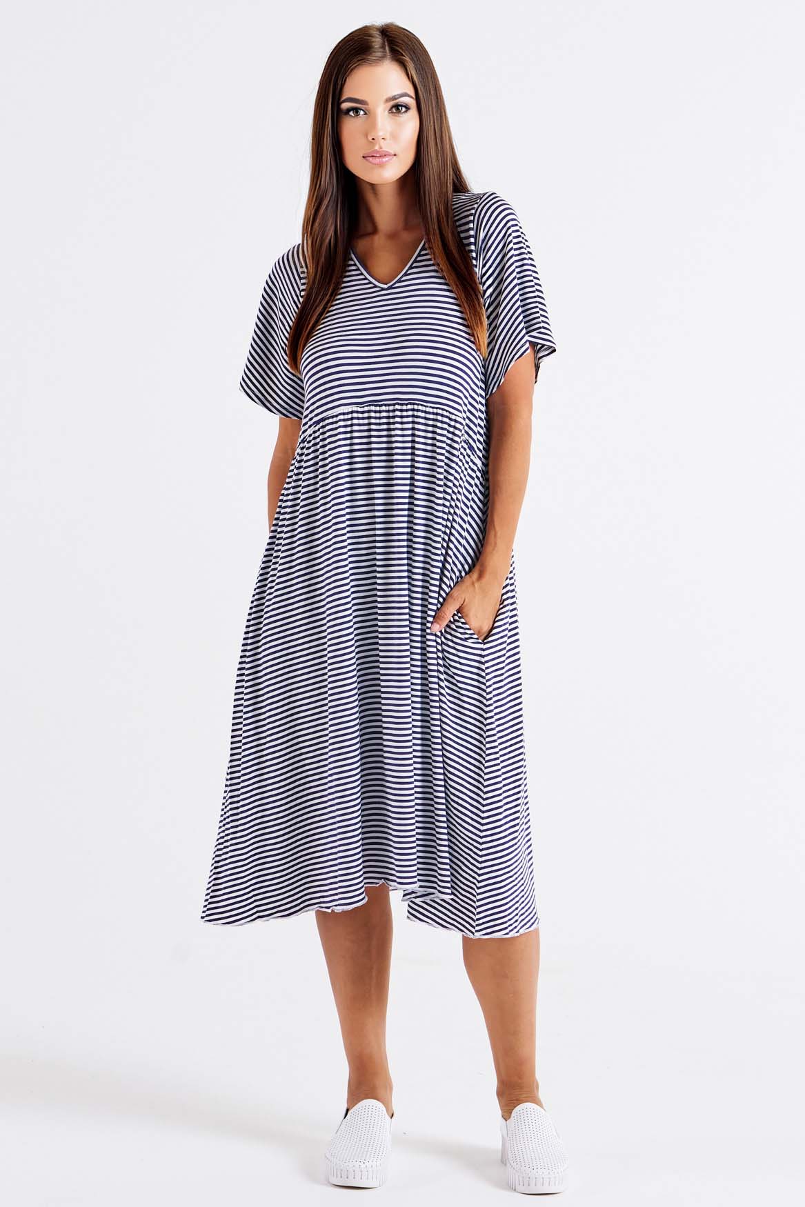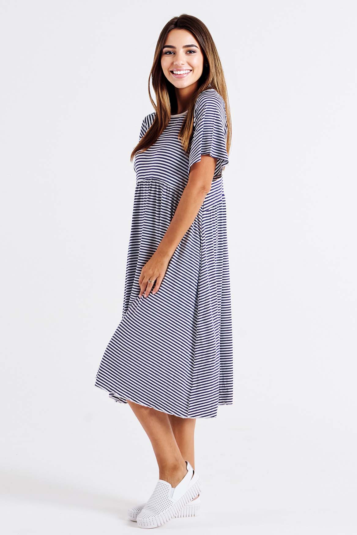Betty Basics Donna Midi Dress in Navy White Stripe